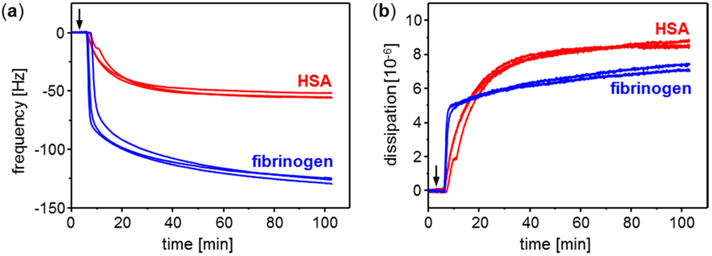 3.2. Conditioning Film Formation on Polymers: Adsorption of HSA on Parylene C, PMMA, and PS