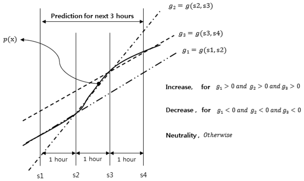 Neutrality type: The harvested energy dose not continuously increase nor decrease for the next three hours. Namely, the harvested energy is predicted to fluctuate for the next three hours.