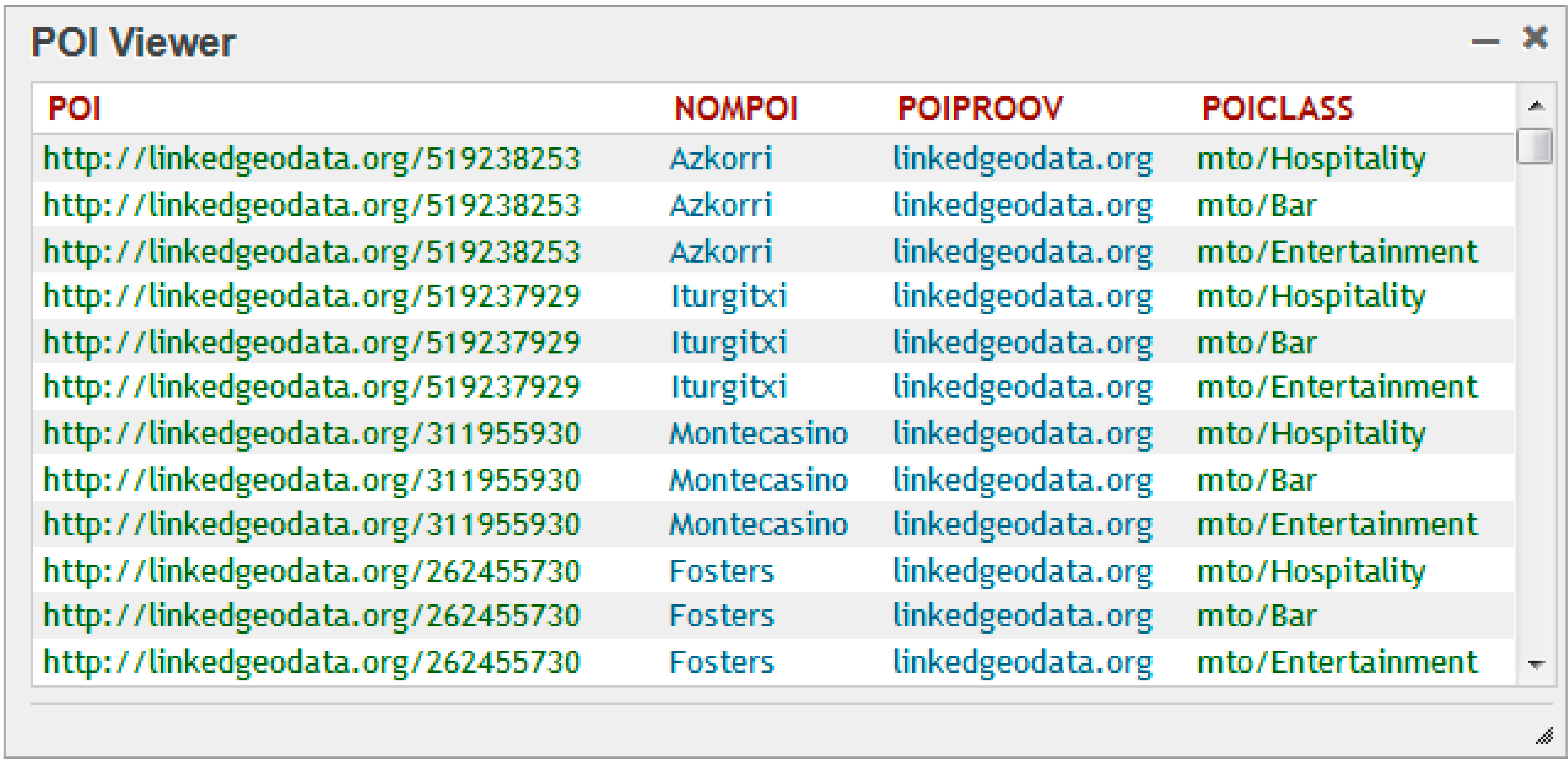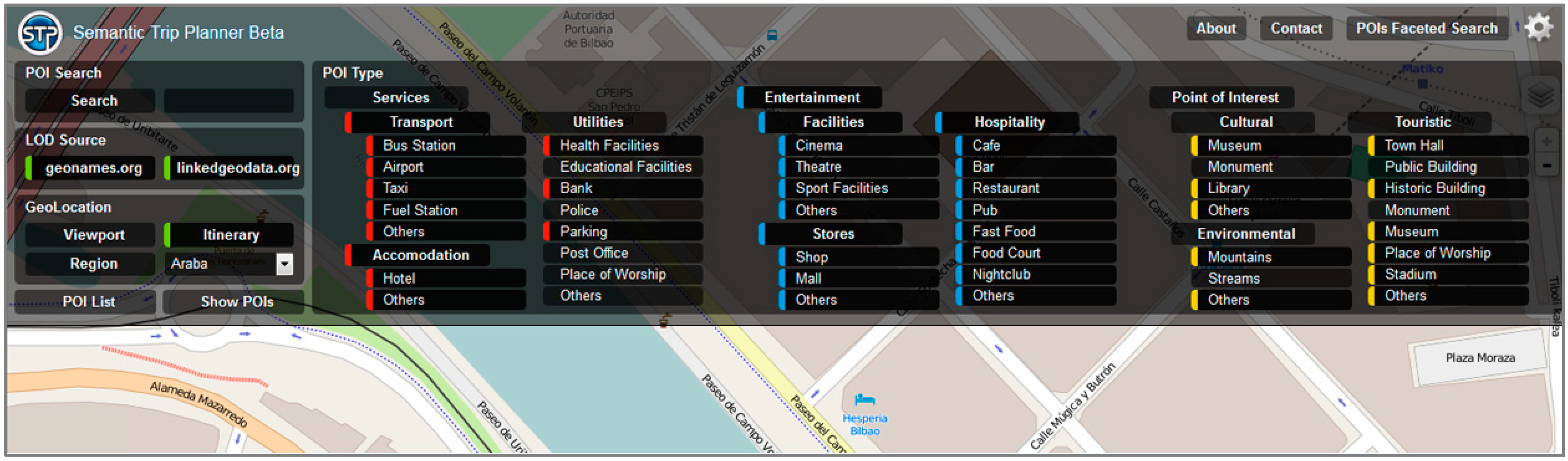 - In a geopolitical way (e.g., POIs located in Biscay).