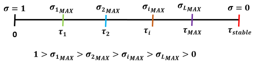 As was explained, the parameter σi is dependent on τ and |x(t) − xeq|, and σi ∈ [0, 1] guarantees: