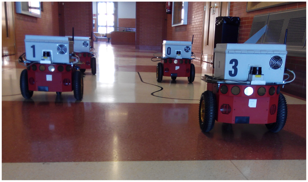 - Santos, C.; Espinosa, F.; Pizarro, D.; Valdés, F.; Santiso, E.; Díaz, I. Fuzzy Decentralized Control for guidance of a convoy of robots in non-linear trajectories. Proceedings of the IEEE Conference on Emerging Technologies and Factory Automation (ETFA), Bilbao, Spain, 13–16 September 2010; pp. 1–8.