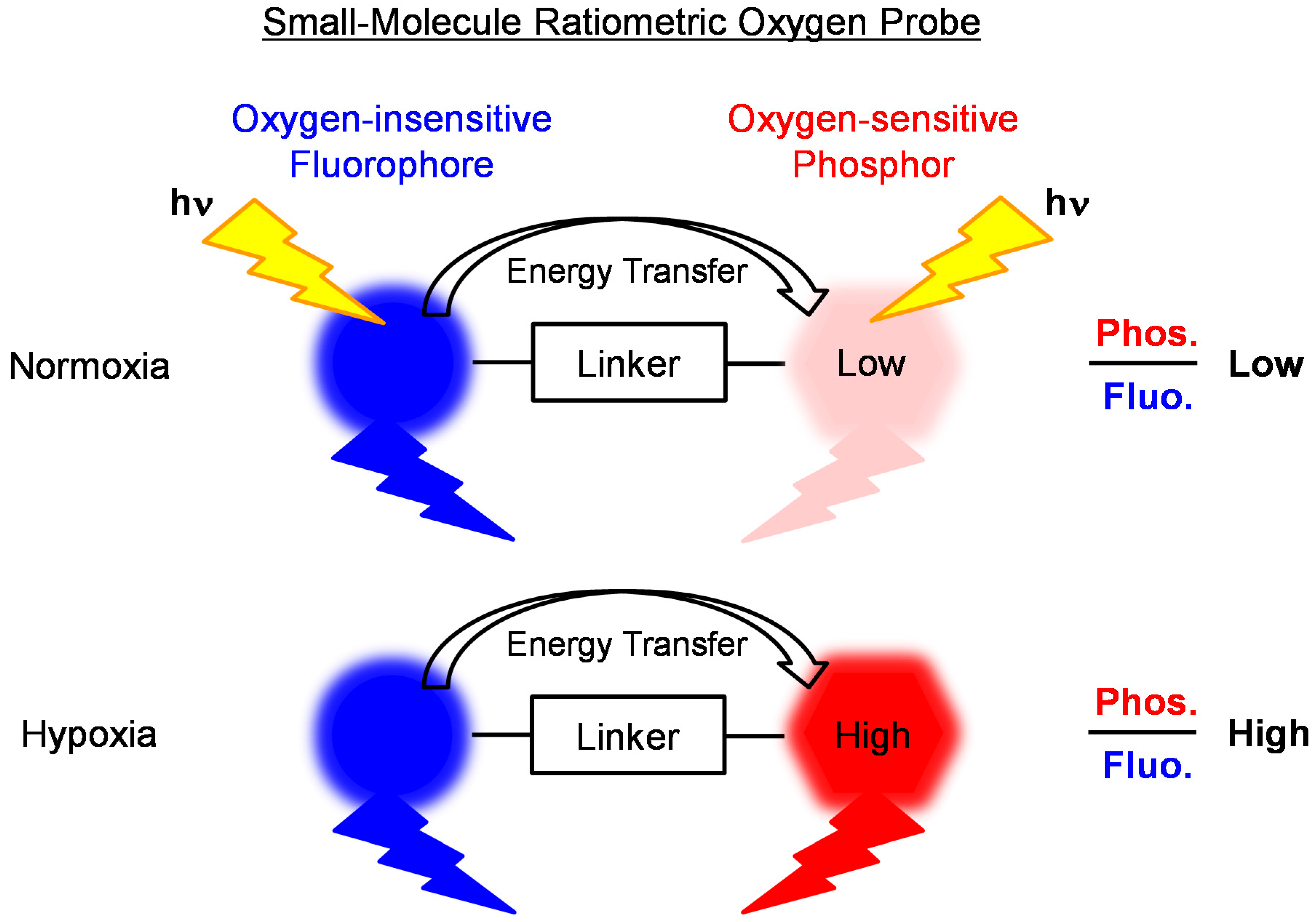 - Yoshihara, T.; Yamaguchi, Y.; Hosaka, M.; Takeuchi, T.; Tobita, S. Ratiometric molecular sensor for monitoring oxygen levels in living cells. Angew. Chem. Int. Ed. 2012, 51, 4148–4151. [Google Scholar] [CrossRef] [PubMed]
