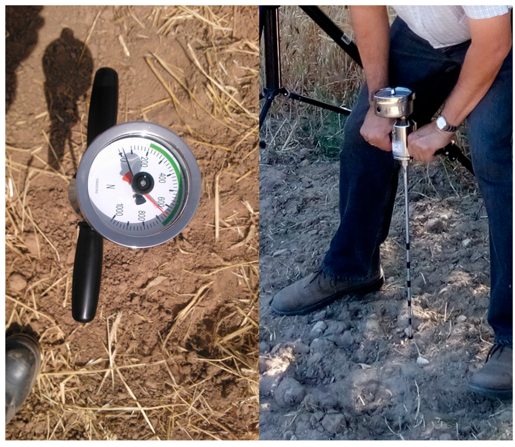 - American Society of Agricultural Engineers (ASAE). Soil cone penetrometer. In Recommendation ASAE R313, Agricultural Engineering Yearbook; American Society of Agricultural and Biological Engineers: St. Joseph, MI, USA, 1969; pp. 296–297. [Google Scholar]