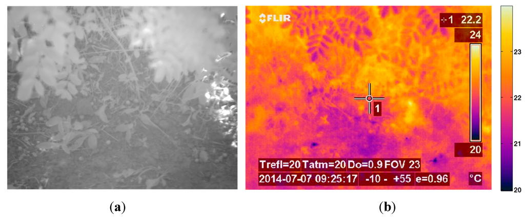 Authors would like to express their gratitude to Manuel Armada for his towering support through this research. They would also like to thank Angela Ribeiro for facilitating the use of the LWIR thermal camera during the experiments of this research. Special thanks are also due to Javier Sarria for his assistance during the experimental stage of this work. The authors acknowledge funding from the European commission in the 7th Framework Programme (CROPS Grant Agreement No. 246252) and partial funding under ROBOCITY2030-III-CM project (Robótica aplicada a la mejora de la calidad de vida de los ciudadanos. Fase III; S2013/MIT-2748), funded by Programa de Actividades I + D en la Comunidad de Madrid and cofunded by Structural Funds of the EU. Héctor Montes also acknowledges support from Universidad Tecnológica de Panamá.