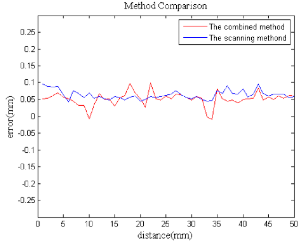 In this section, we measure the distance separately using only a scanning sensor, the MAXscan, and the combined system, and then, the validity of the combined method is demonstrated by comparative experiment results.