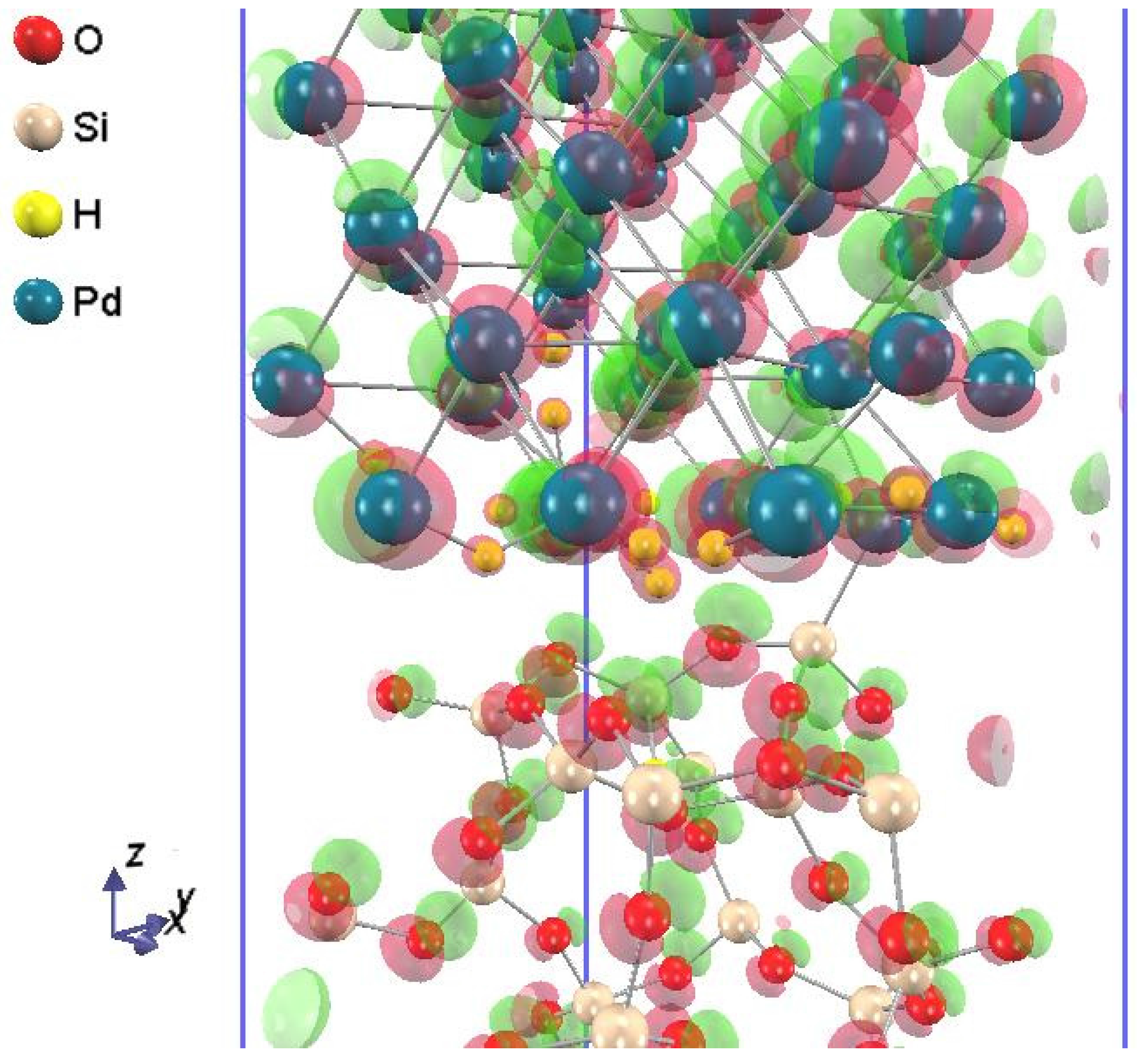 2 interfaces, a charge-density difference plot of the Pd-SiO