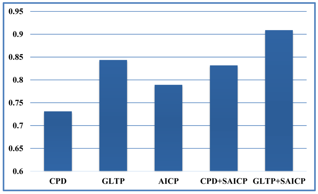 We first show some qualitative results of GLTP (α = 10, β = 2, λ = 5 × 106 and K = 10) by comparing with CPD in Figure 11 in terms of segment labeling accuracy. When articulated deformation is not significant between the template and target, such as the first pose, both CPD and GLTP perform well. However, in the cases of highly articulated deformations, e.g., Poses 2 to 5, significant labeling errors are observed around the head, limbs and body joints in the CPD results. On the other hand, GLTP provides stable segment label estimation across all poses. However, the results around limb joints are still not very reliable. We further perform the comparative analysis (averaged over 38 poses) with CPD, GLTP and AICP [16] in Figure 12, which shows that GLTP is the best one among all three, and AICP is better than CPD due to the fact that its locally rigid assumption is suitable for 3D human data. Figure 12 shows the labeling accuracy of body segments of our approach (GLTP + SAICP). It is shown that a significant improvement is achieved by using GLTP and SAICP jointly (GLTP + SAICP), which is also better than the one using CPD and SAICP together (CPD + SAICP). We visualize some labeling refinement results in Figure 13, where obvious improvements are seen around limb joints.