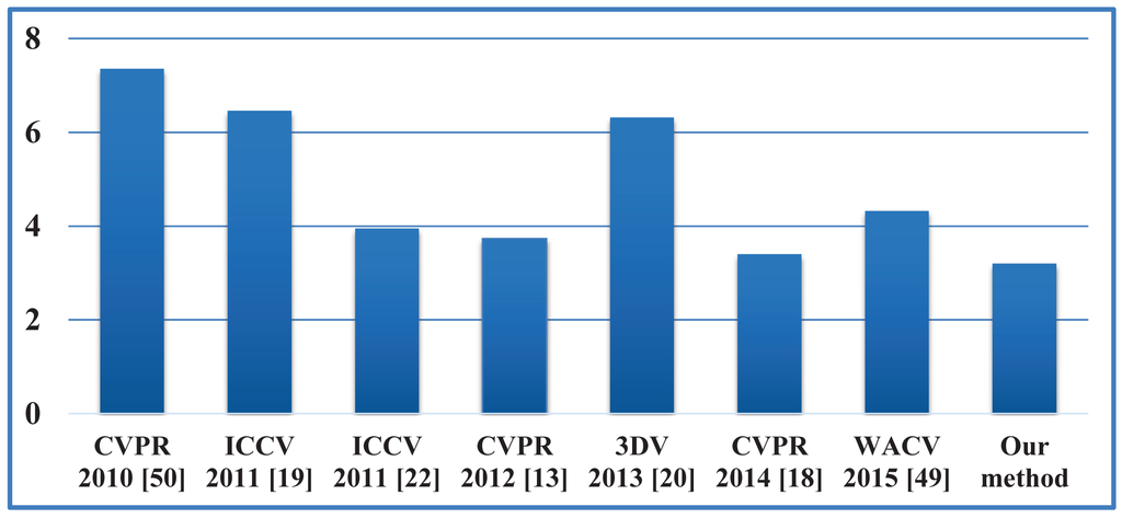 The computational loads of the three registration algorithms (CPD, GLTP and SAICP) involved in the proposed framework are shown in Table 1. CPD is only performed once for personalized body shape initialization, and GLTP shares a similar EM algorithm as CPD. Their computational costs could be reduced by using fast implementations [34], then the cost for computing P in CPD and GLTP, which involves the calculation of the sum of exponentials, could be reduced from O(MN) to O(M + N). Pose tracking reduces the computational load of GLTP significantly By using the low-rank matrix approximation, the cost for solving the linear system defined in Equation (7) to find W in GLTP could be lowered from O(M3) to O(R3), where R ≪ M is the lower rank value. Using the K-D tree to search for nearest neighbors [24] in GLTP and SAICP, the cost could be further decreased form O(M2) to O(M log(M)).