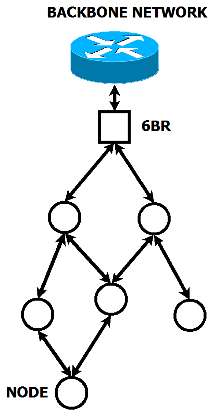 In this scheme, at least one of the nodes in each mesh area acts as a border router (BR) to communicate the group with the wired backbone and hence with the central servers and the cloud. Figure 8 summarizes this architecture model.