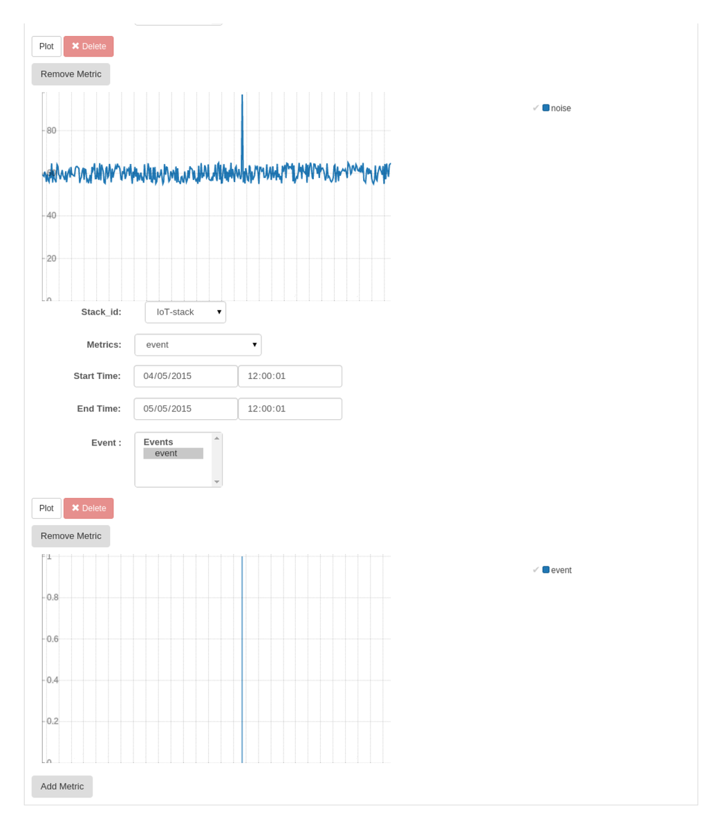 Our modifications to the Esper engine include a built-in REST client to trigger a reaction according to an event of interest and a “container” class for objects (beans) associated with categories of events. The main package is called IoTep, and each bean hosts the attributes that describe the category of objects upon which one or more events are to be processed. Beans have to also host “getter” methods for each attribute to be referenced in an EPL-encoded rule. In particular, Ceilosample is the bean that describes an object defined as a metric received from the CEP with generic attributes that any kind of measurement needs to include (at least: name, metric unit, value, timestamp) and the corresponding getter methods (getName, getUnit, getValue, and so on). A separate package hosts listeners, where each file contains the class that describes an individual event and its handling. Inside such classes, the following methods are to be implemented: