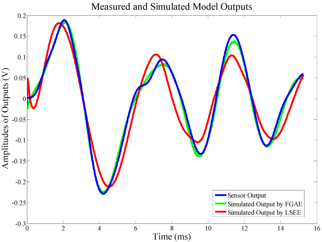 In that way, in order to indicate the accuracy of the forward system model simulated through fast GA parameter estimation, the simulation results are compared with recorded sensor signals and the modeled output using least squares error (LSE) estimation, shown in Figure 4. This figure reveals intuitively that the accuracy of the simulating output from FGAPE is much better than that of LSEE.