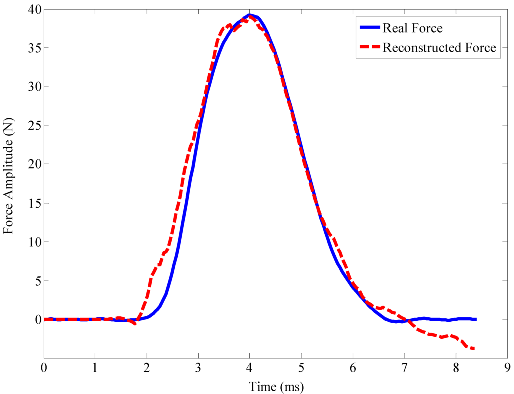 Finally, an impact force which is applied at the location on a structure can be reconstructed through Equation (9) that is the matrix convolution expression of Equation (7):