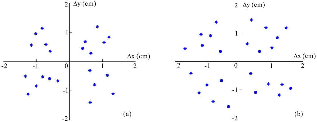 Location estimation errors for the random impact events. (a) On the normal structure; (b) On the cutout structure.