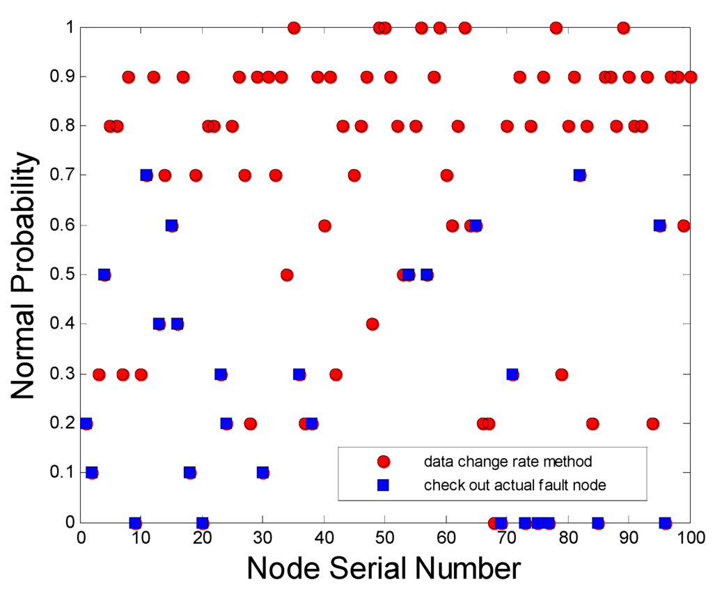 In [5], a data change rate method was proposed. The normal data change rate was contained in a pick data zone, which for anomalies found and outliers rejection changed with the change rate and adjusted the width of pick data zone based on the sampling data. In [6], a fault diagnosis method for WSN sensors based on Bayes decision theory was proposed. The basic principle of this algorithm was used for fault location and repair decisions in the modules of each node. Moreover, in carrying out the analysis using Bayes decision theory, the collection of historical fault information from WSNs is essential. Then, a prior probability of fault status is detected, and a decision based on the real-time sign state made for the posterior probability. Finally, according to the Bayesian decision criteria, whether or not a node failure had occurred was determined. In addition, this method based on Bayesian decision theory has little communication costs and energy consumption. If the node fault sample decision table with historical fault information were more reliable, the accurate fault diagnosis rate would be higher. Hence, it is a method applicable for fault diagnosis in WSNs which have limited node energy. On the other hand, the method is excessively dependent on the availability of WSN node fault sample decision tables, historical fault information, and prior probabilities of various faults that can be used as statistics for nodes are essential.