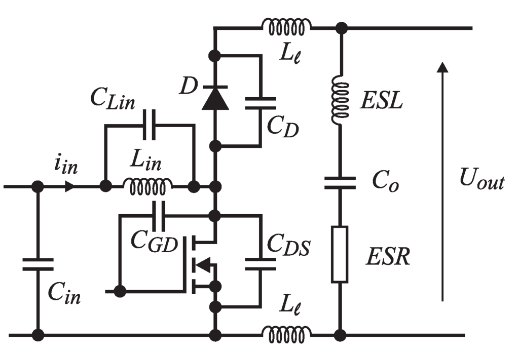 Parasitic elements in the boost converter.