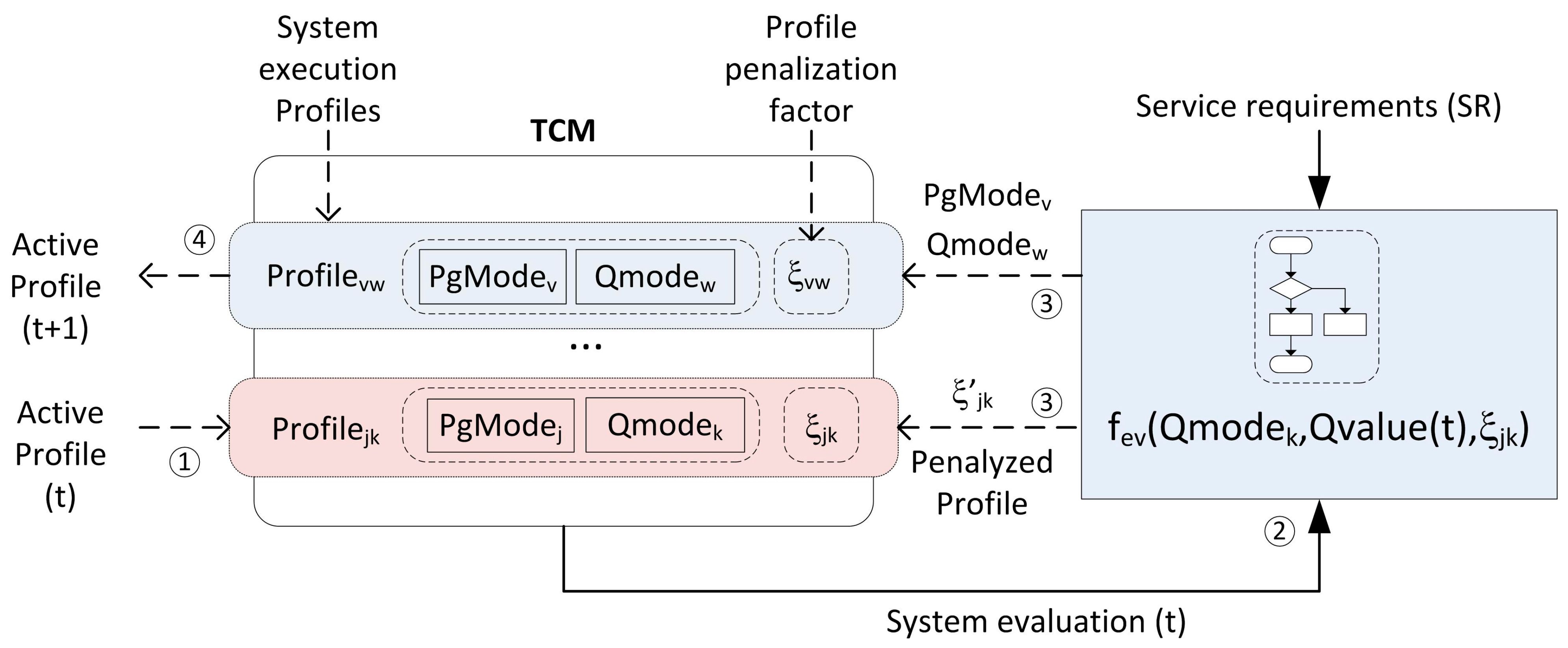 Therefore, the TCM (Figure 3) is composed of a set of possible profiles and its mission is the dynamic selection of the most appropriate profile depending on the service requirements.