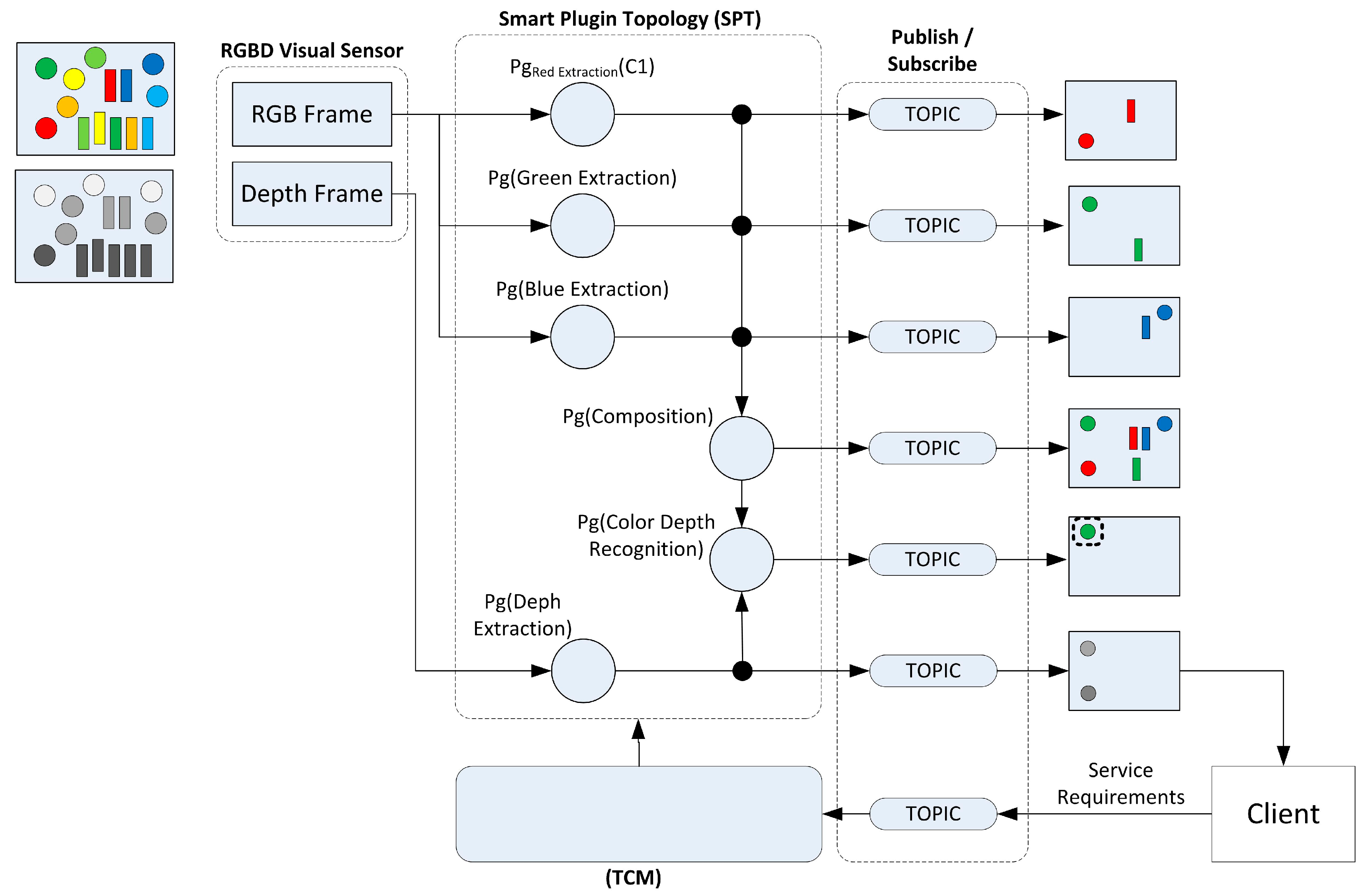 Plugins have been organized within the SPT [37]. The main objective of the SPT is to improve and optimize the processing step defining the plugin configuration and composition capabilities [38] as is detailed in Figure 2. Composition is needed since one plugin output may be useful to another for obtaining more complex information. Therefore, plugins in the SPT can be combined in order to avoid code duplicity and inappropriate use of the system resources. That way, the SPT can dynamically compose a set of plugins to suit the specific requirements of the system.