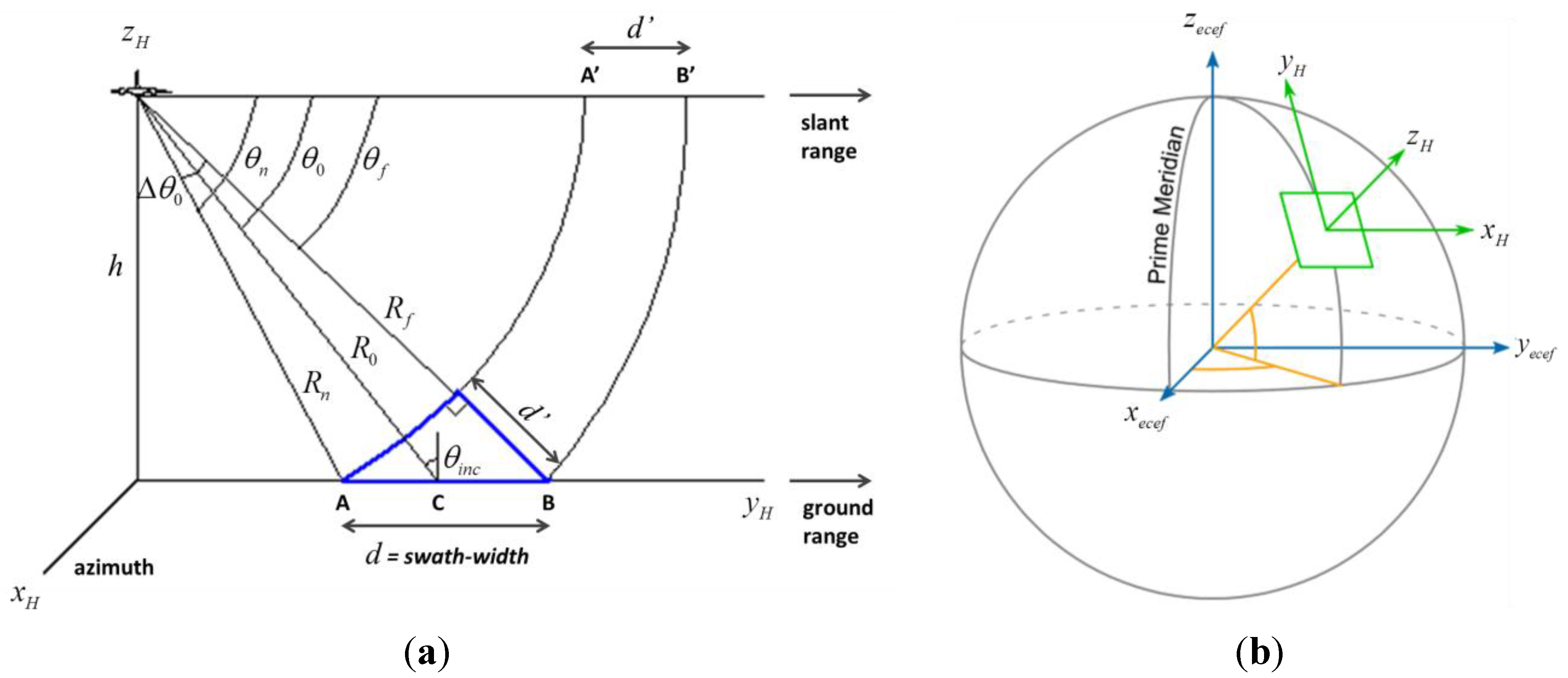 Figure 2b we assumed the flat Earth approximation, which can be considered valid for the airborne case, even for long-range systems [