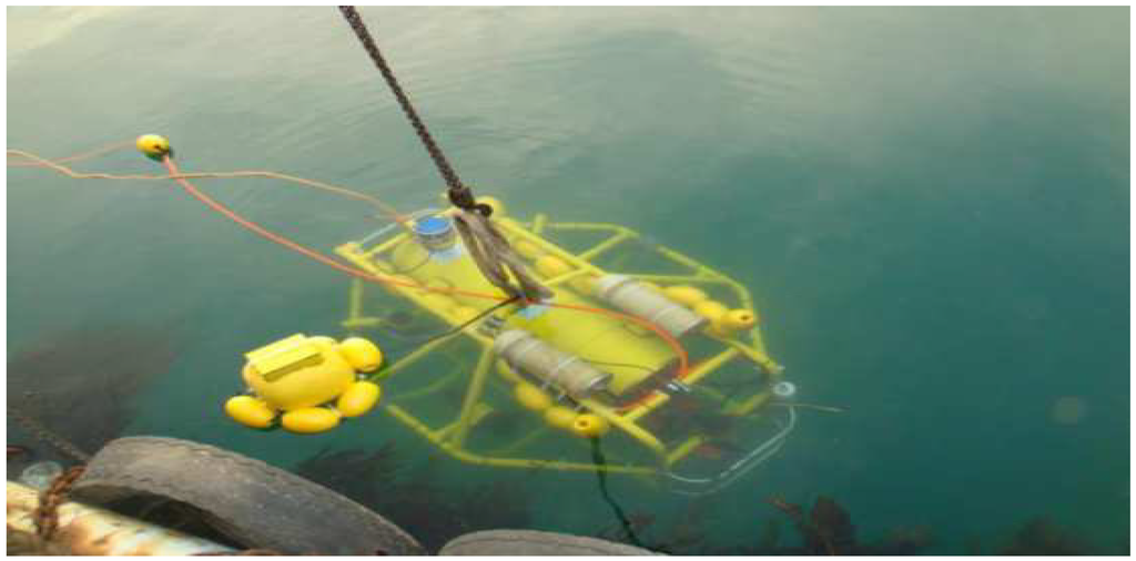 There are a lot of sensors installed on the C-Ranger, and they are generally divided into the internal group and the external group. Internal sensors are the digital compass, gyro, the attitude and heading reference system (AHRS) and the pressure sensor. External sensors include mechanical scanning sonar, the Doppler velocity log (DVL), altimeter, CCD camera and GPS. Among them, the mechanically scanning forward-looking sonar (Super Seaking DST, Tritech) for active sensing of environment features installed at the front top of C-Ranger is the principal sensor. It works at a frequency of 675 kHz and a range of up to 300 m.