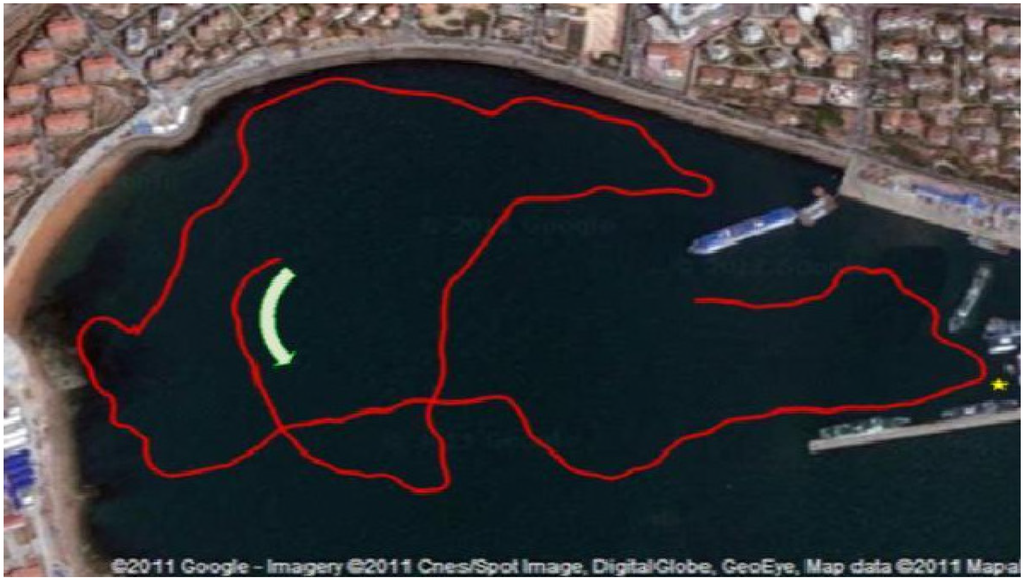 The satellite map of Tuandao Bay and the trajectory of C-Ranger by GPS.
