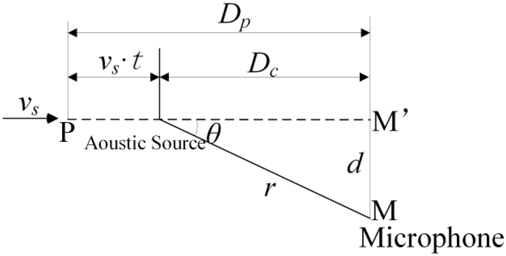 21]. Especially, frequency shift and frequency band expansion would appear in the spectrum of the acquired acoustic signal. Besides, the amplitude of the origin signal would be modulated according to the Morse acoustic theory. As a consequence, the performance of the diagnosis system would be brought down greatly, especially when the train is passing by at a high speed.
