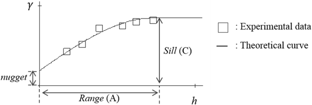 Theoretical semivariogram and experimental semivariogram.