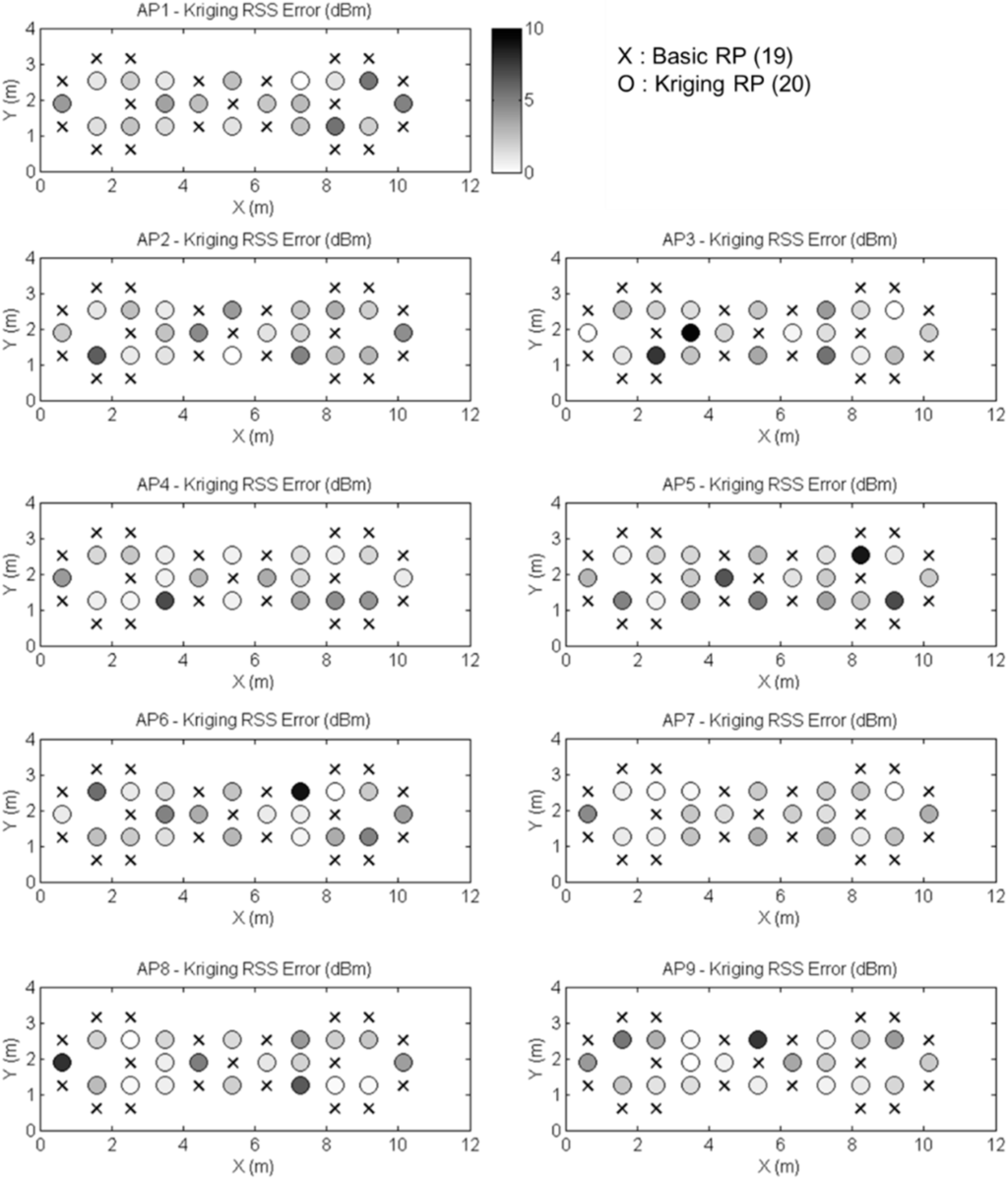 The RSS interpolation errors for 20 Kriging RPs.