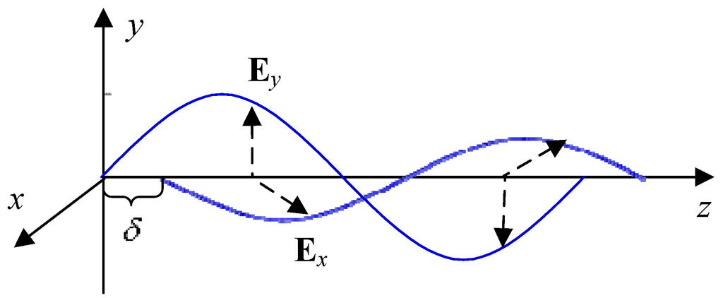 where is the intensity of the light vector components and is the phase error between the two orthogonal light vector components. These three parameters can be found in Figure 2. As shown in Figure 2, the two orthogonal light vector components, and , are defined as: