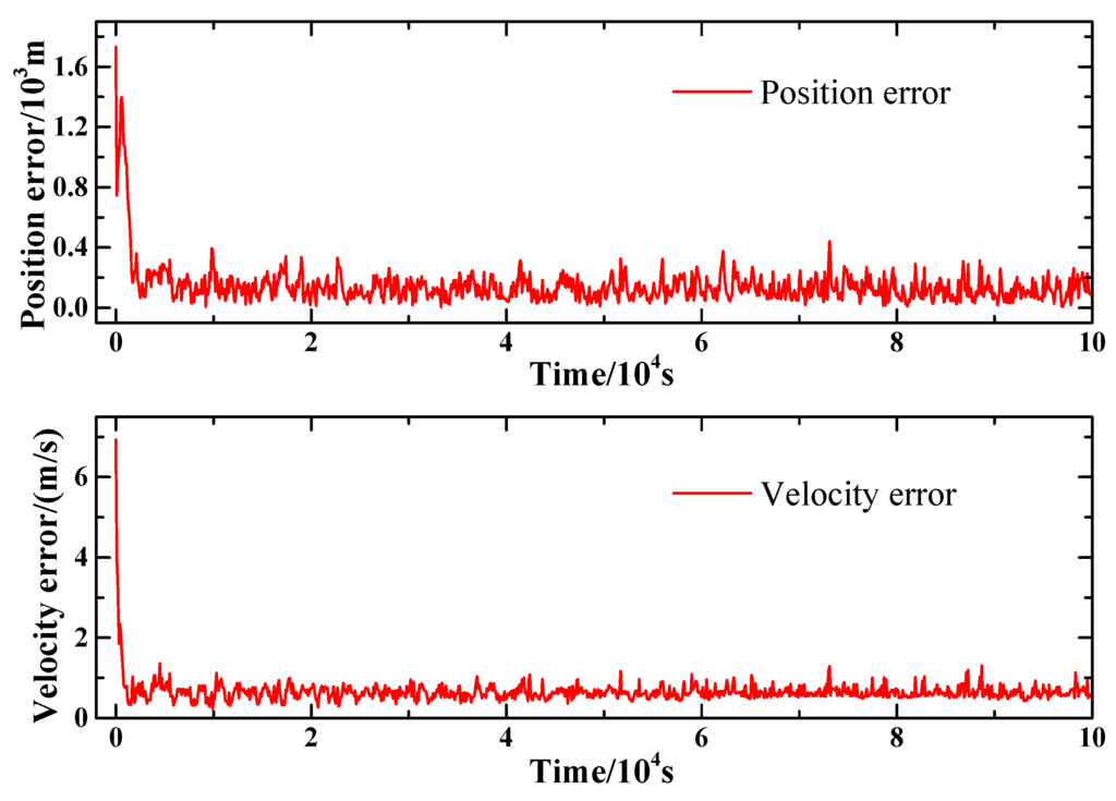 Figure 7 presents the filtering results of the proposed method in different orbits. As shown in Figure 7, the performance of the position and velocity estimation on Orbit 1 and Orbit 2 shows much similarity. This indicates that the proposed method applies not only to the high Mars orbits, but also to the geostationary Mars orbits.