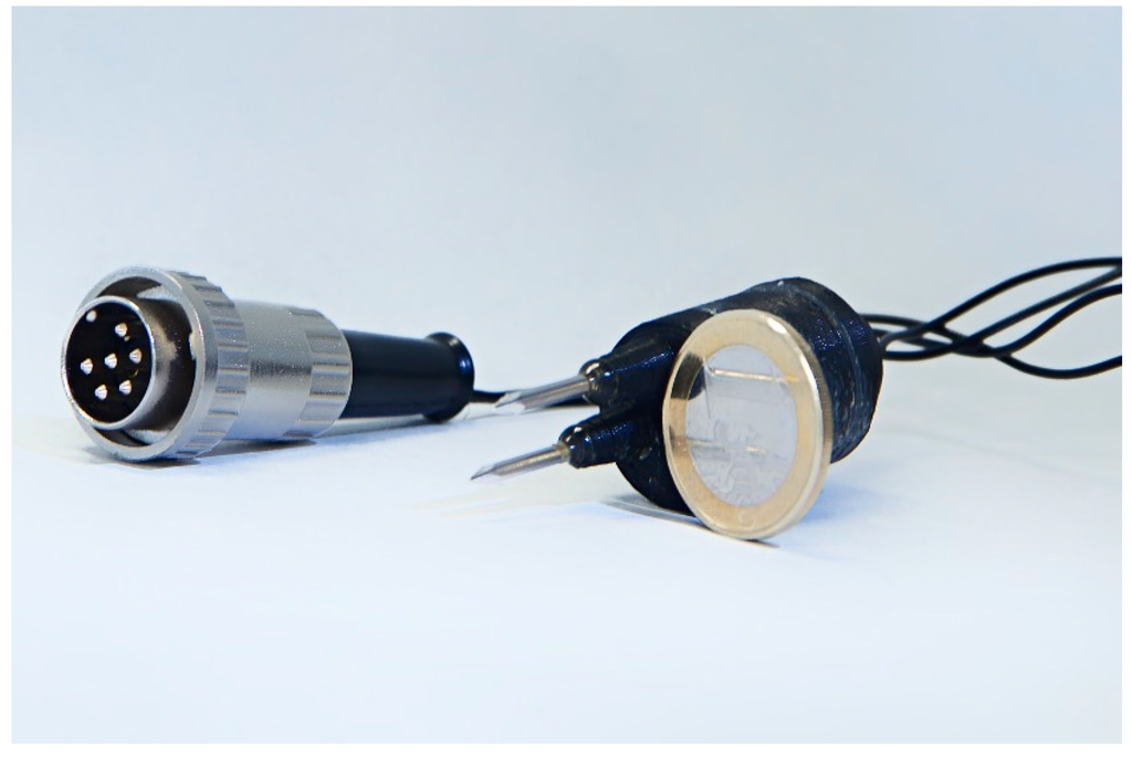 A view of the designed double needle electrode.