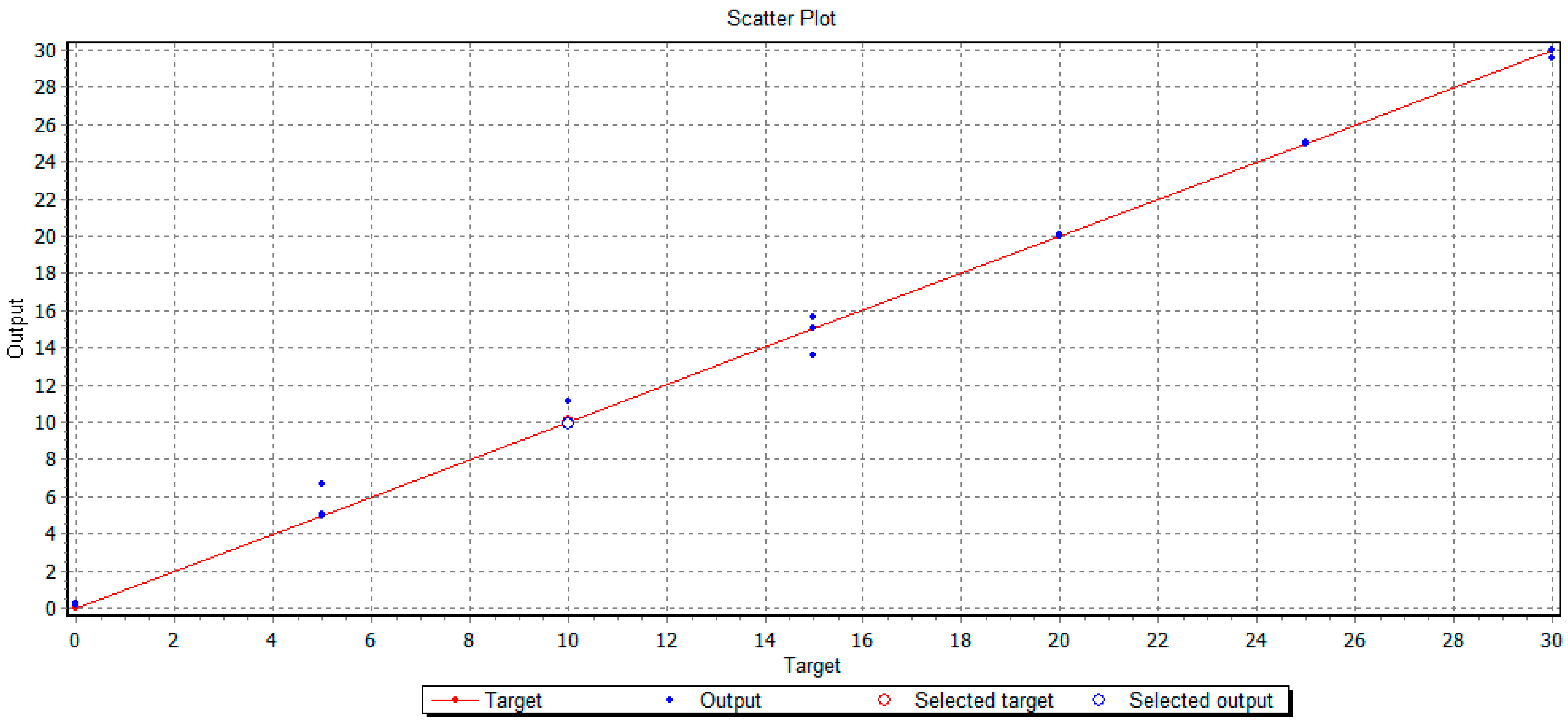 Regression line plot of the obtained ANN model for the studied sucrose concentrations (g/L).