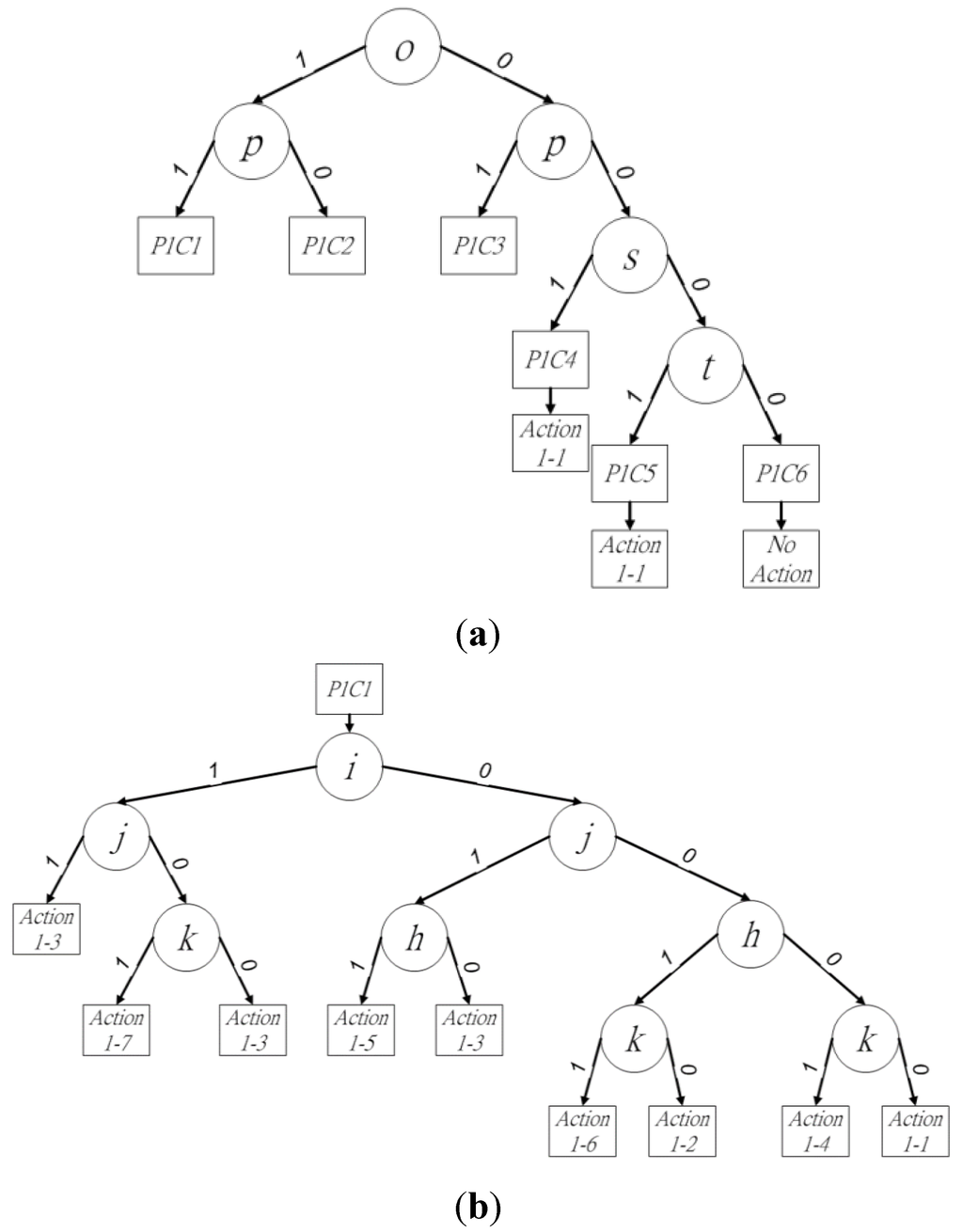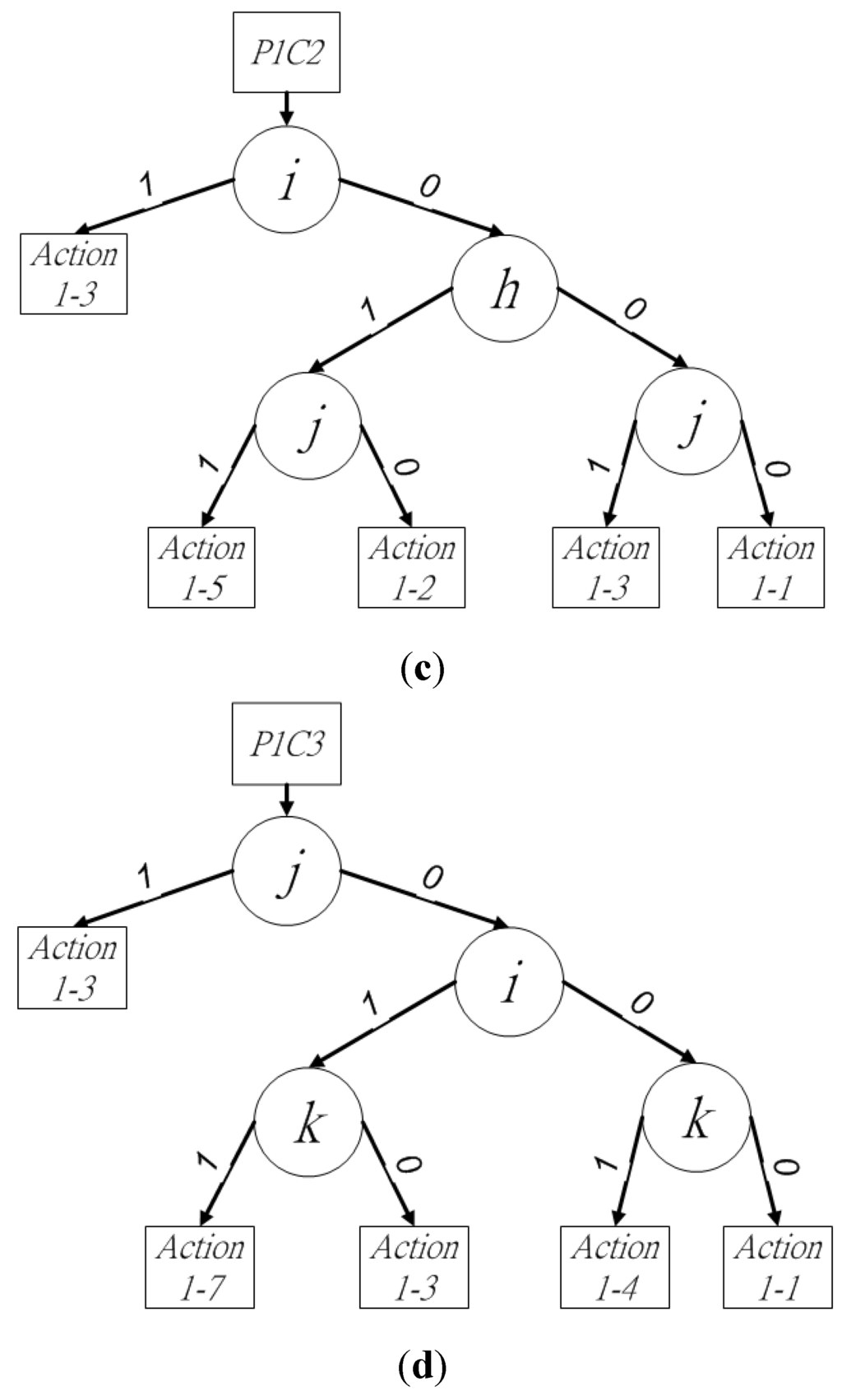 Binary decision tree of (a) procedure 1, (b) P1C1, (c) P1C2 and (d) P1C3.