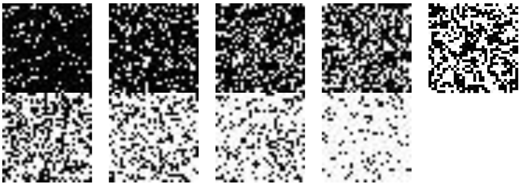 Examples of random noise images at a resolution of 32 × 32 that produced label densities from 0.1 to 0.9.