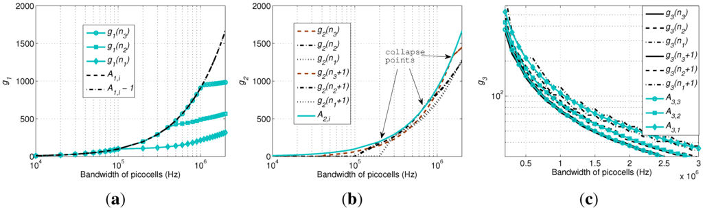 Some studies considered intelligent learning algorithms to search for the PSNE. Feng et al. [] proposed an evolutionary game model for CS in a two-tier femto/macro scenario, and the reinforcement learning algorithm was used to search for the evolutionary equilibrium. Tan et al. [] studied the CS problem in a two-tier femtocell network. To achieve PSNE without a centralized controller, the Q-learning algorithm was used to help distributed individual users adapt and make decisions independently. Dhahri and Ohtsuki [] proposed a Q-learning-based CS scheme, which predicted the best cell by the Q-learning algorithm during the handover procedure, so it improved the system capacity, avoided unnecessary handovers and decreased signaling cost. Kudo and Ohtsuki [] proposed a scheme to select a cell by the Q-learning algorithm to minimize the number of outages from its past experience independently. Liao et al. [] tried to embed ICI into the CS congestion game in a scenario with one macrocell and one picocell. PSNE was analyzed in both theoretical and simulative ways. In this article, for densely-deployed sensor and mobile devices in HCNs with multiple picocells, we work on the analysis of PSNE collapse toward the macrocell impacted by severe ICI and the corresponding degradation of system performance, which is not revealed by any of the above studies.