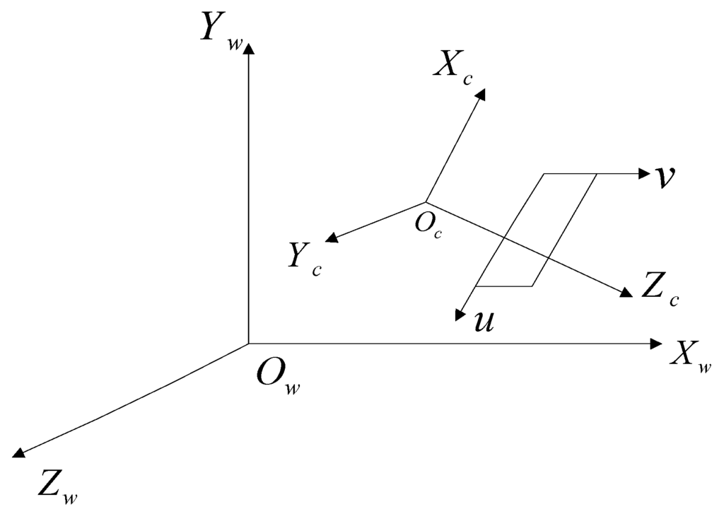 where the first term of Equation (6) is the object position data in the world coordinate, the third term of Equation (6) is the object image position data in the camera coordinate, and the second term is the mapping matrix between them. The calibration aims to obtain this mapping matrix and then determine the positions of “near” and “far” points in the world coordinate.