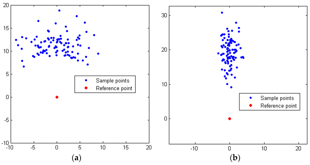 (a) Biased Gaussian samplings for near point in a straight road and (b) Biased Gaussian samplings for far point in a straight road.
