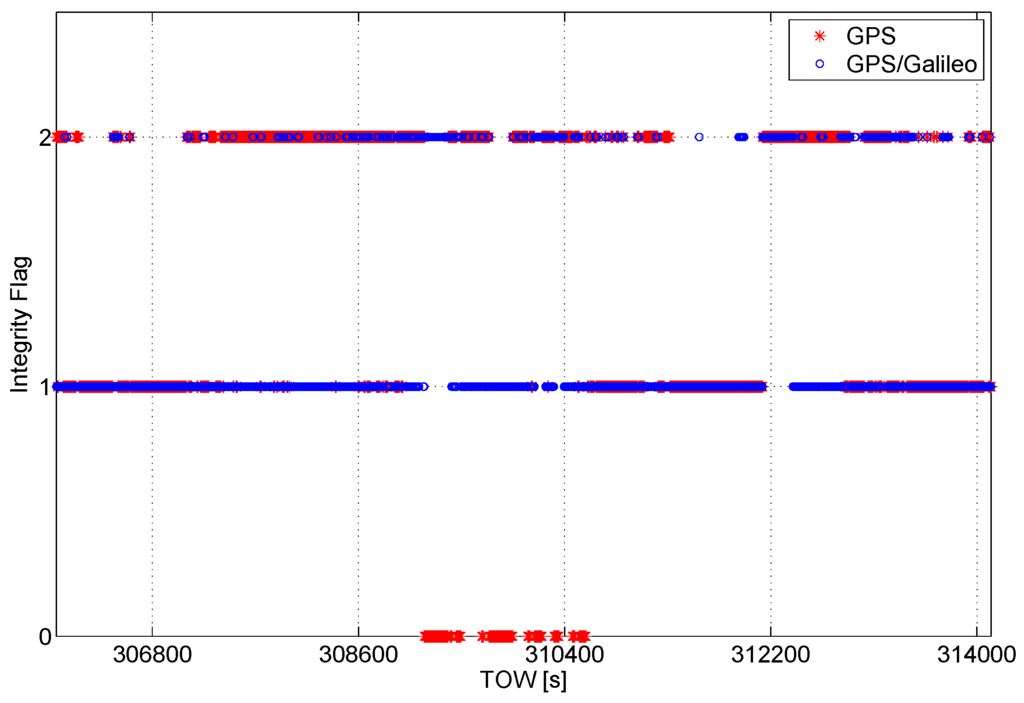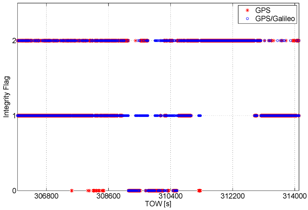 Quality monitoring procedures are part of the integrity process, which refers to the ability of a system to provide timely warnings to users when the system should not be used []. In GNSS, integrity information can be obtained from different sources.