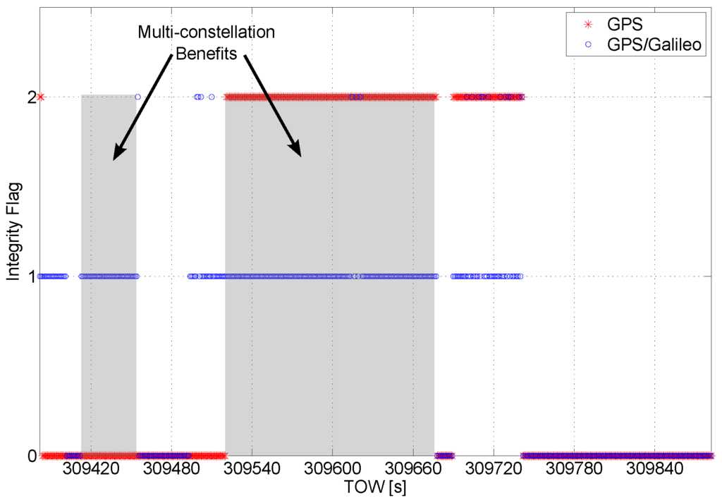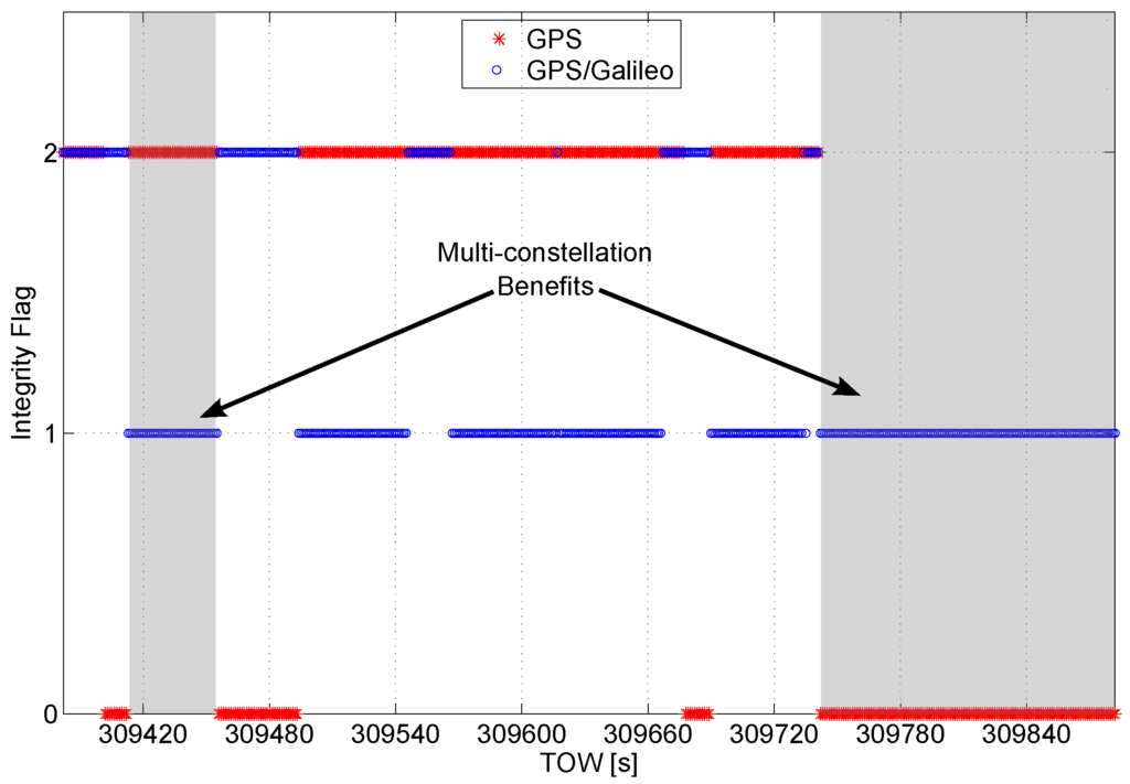 Multi-constellation receivers are able to process an increased number of satellite signals and, thus, can provide a more continuous solution with respect to single constellation devices [].