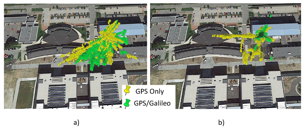 Among the proposed solutions, the multi-constellation approach, i.e., the joint use of measurements provided by several GNSSs, has the potential to enable GNSS usage in environments where navigation using a single GNSS is usually precluded [,,,,].