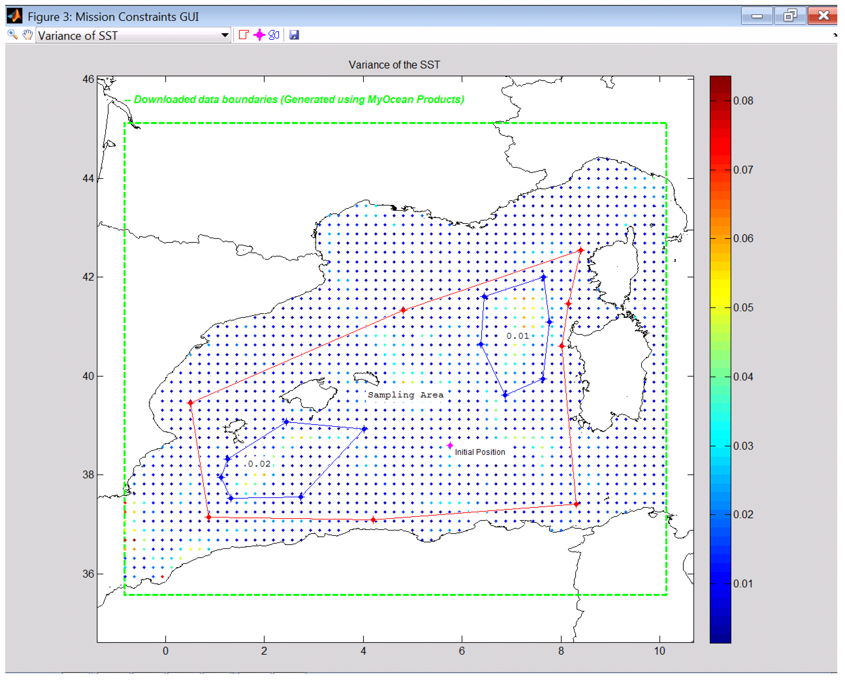 32]. The tool provides two graphical user interfaces that allow the user-friendly definition of the sampling area and to define the desired target uncertainties. This tool provides an integrated, effective and operational system for glider operators to ease the whole mission planning process and post-mission analysis.