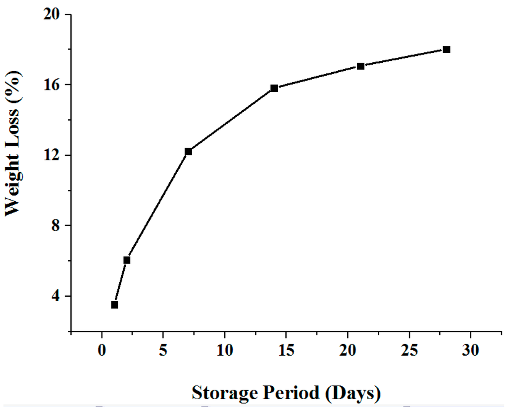 Weight loss of samples during storage period with respect to their fresh (0D) weight.