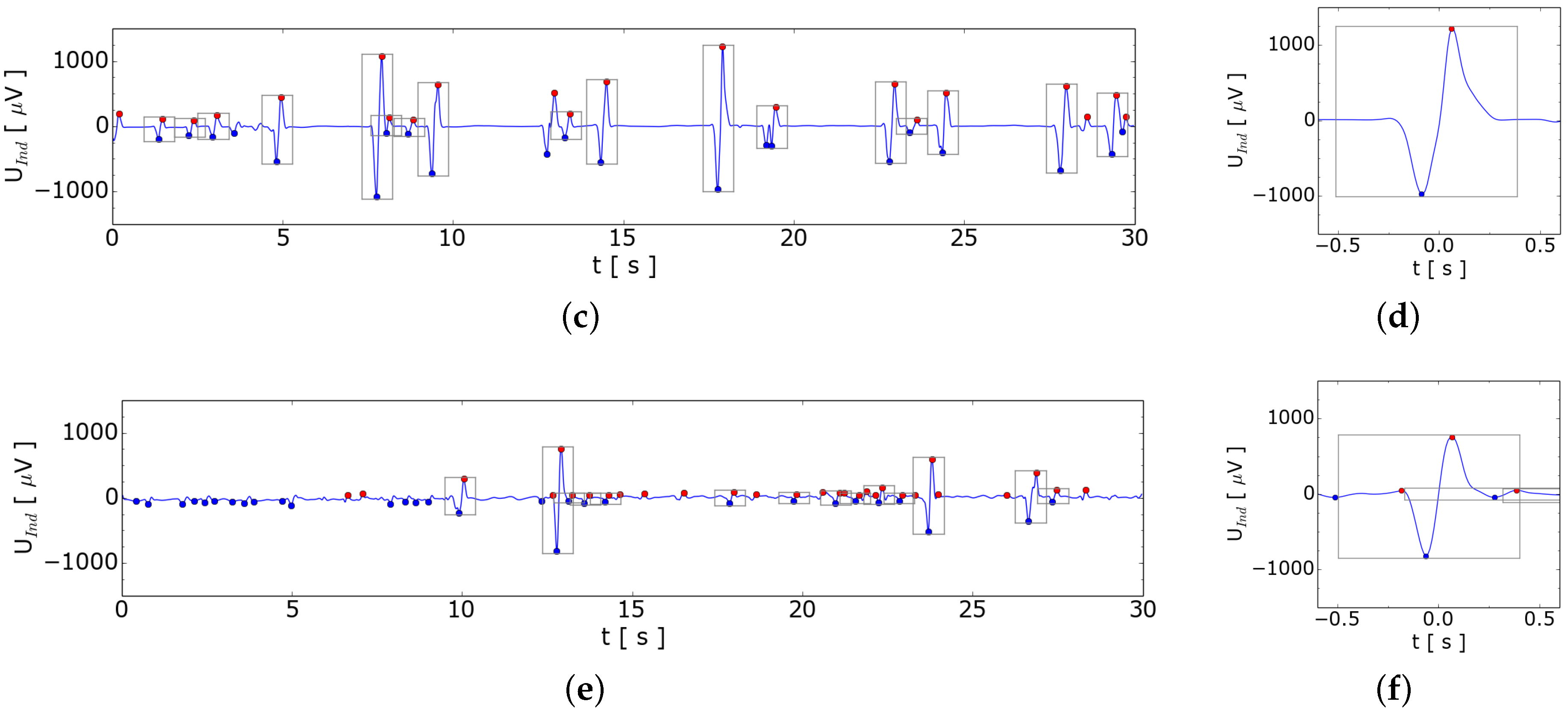Section 4.1, the signal of the bubbles can be enhanced and processed further. The plotted voltages represent always the induced voltages at the gradiometer fed to the pre-amplifier and not the acquired voltage at the AD-converter.