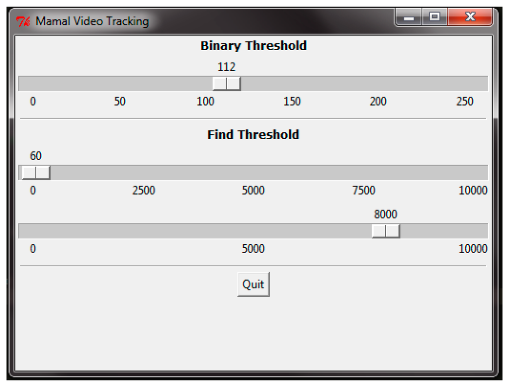 Graphical user interface (GUI) of the intensity threshold algorithm which allows the end user to adjust the thresholds using the sliders.