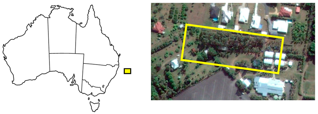The site selected for this experiment was located on the Sunshine Coast, 57 km north of Brisbane, Queensland, Australia. This site is a large rehabilitation enclosure where the number of koalas is determined in advance, which enables the accuracy of our counting algorithms to be assessed (ground-truthing).