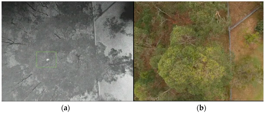 (a) Thermal image (b) digital R6B capture at 60 m.