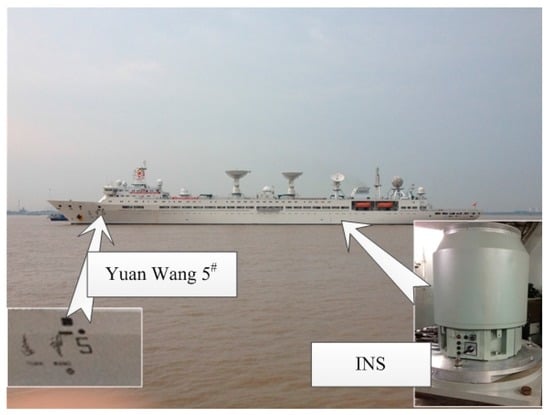 To illustrate the outstanding performance of PM in free-INS, a ship test was performed in the South China Sea using the Yuan Wang 5# surveying ship (shown in Figure 10). The high-precision strapdown INS used in the test consists of three ring laser gyroscopes with bias stability of 0.003 °/h and three quartz accelerometers with bias stability of 5 µg, where PM is carried out. The travel profile and DOVs on the trajectory are shown in Figure 11 and Figure 12.