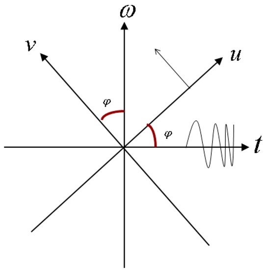 STFRFT firstly divides the target signal into a series of time intervals and then performs FRFT upon each interval of signal. Signal processing using FRFT is equivalent to rotating the time-frequency axis of Fourier transformation (FT), i.e., the signal is observed in a new coordinate system, as shown in Figure 1.