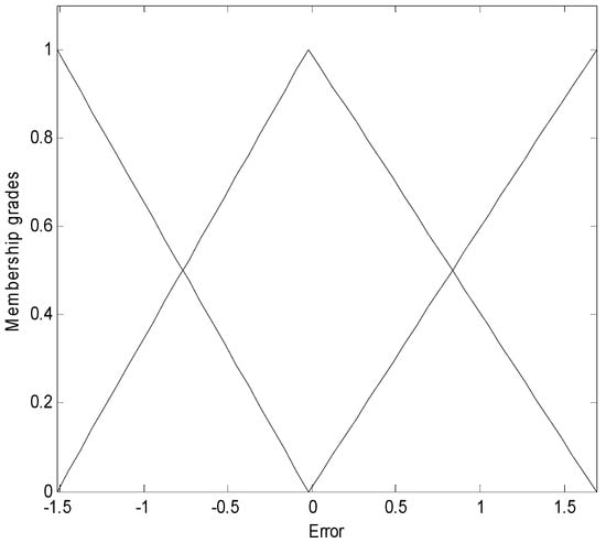 The error values constituted the context dataset. These contexts are generated through the triangular membership functions, and are equally spaced along the domain of an output variable. The membership matrix is initialized between 0 and 1, as shown in Figure 5 (context p = 3).