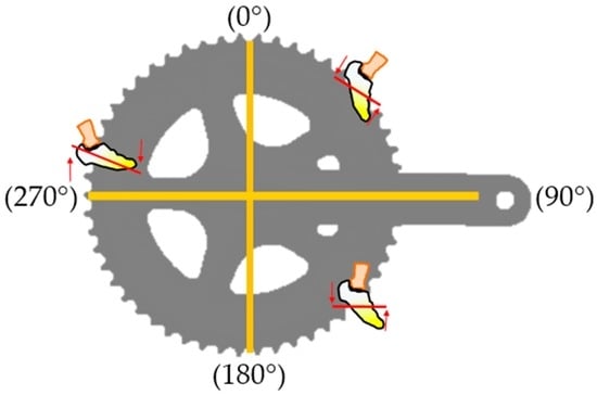 Some analyses can be performed in real time so that corrections can be made during exercise practice, thus providing pedal stroke profiles of the athletes. The foot angle of the athlete on the pedal is crucial to fully transfer the strength of the foot to the pedal [19]. To visualize the correct foot position (angle), a smart sensor was developed that analyzes the angle of the foot by inertial sensors, and presents the correction in an application on a mobile device, so the rider can reposition their foot [19] (Figure 4).