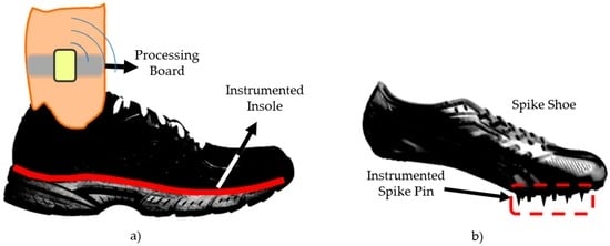Plantar pressure smart sensors: (a) in-shoe insole and (b) spike shoes for sprinters.